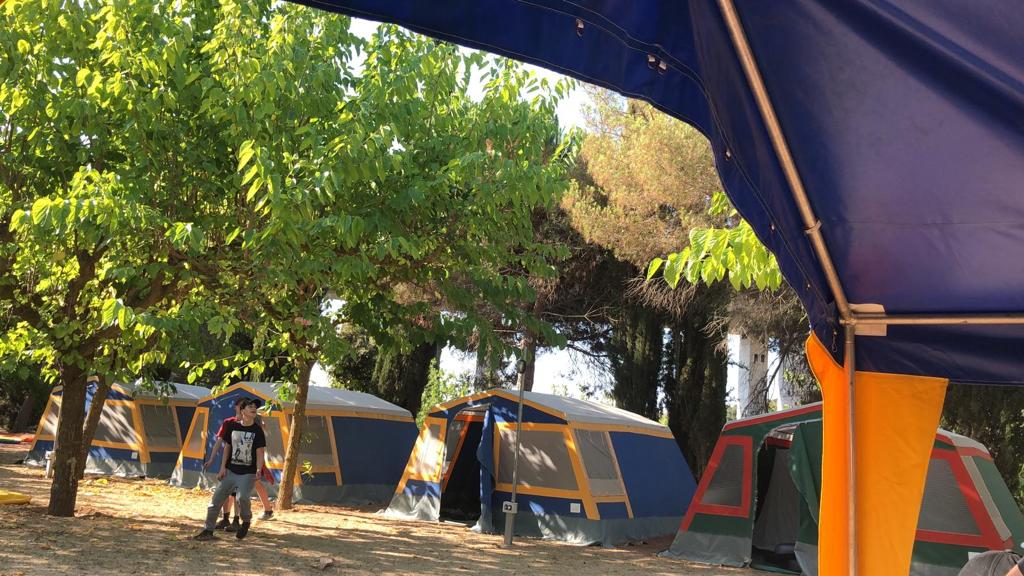 Unser Camp war von schattenspendenden Bäumen uneinsichtig umschlossen. Wir übernachteten in komfortablen 4 Personenzelten. Zum wunderschönen Sandstrand lief man kurz durch das spanische Küstendorf Caldes d´Estrac, auch „Caldetas“ genannt.