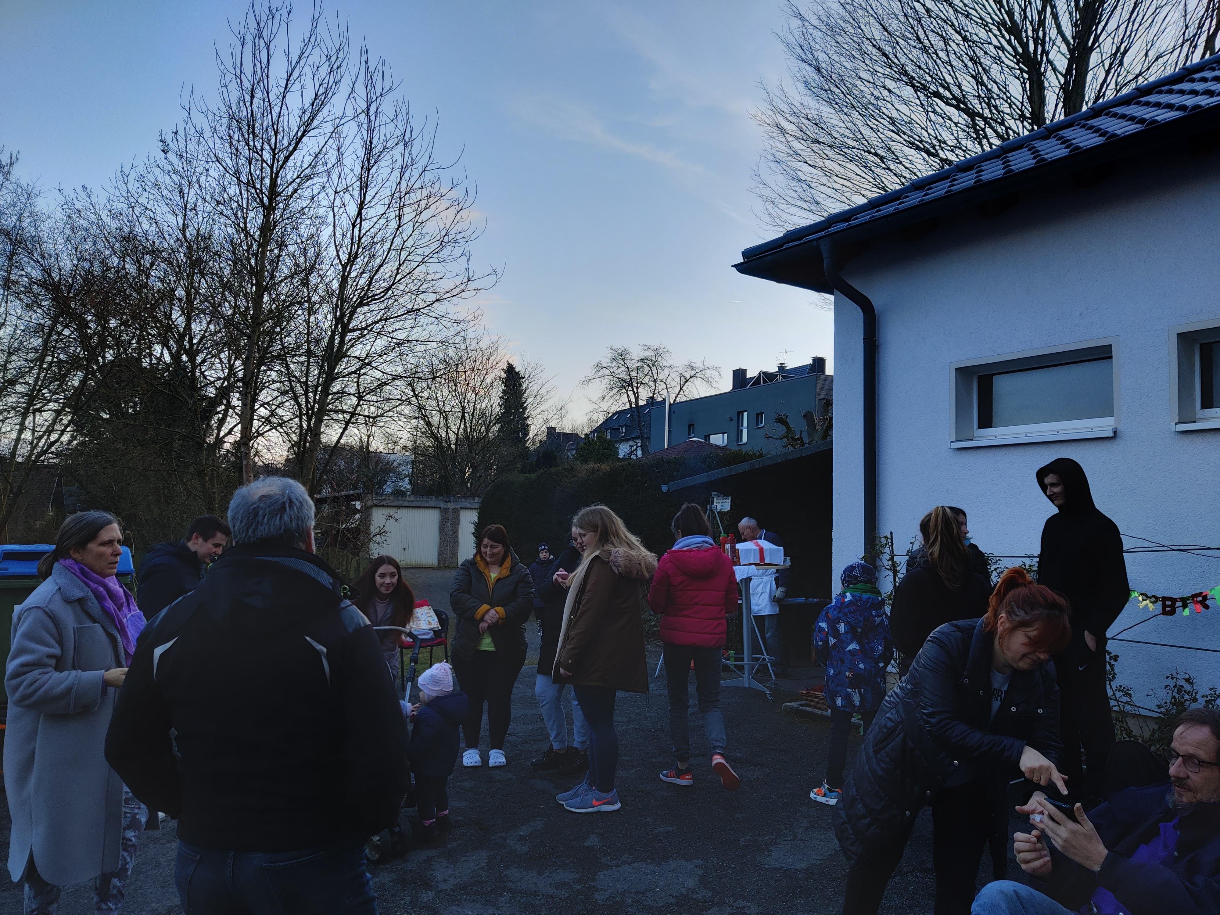 Einige Mitglieder des Presbyteriums und des Bezirks Erlöser sind zur Begrüßung und zum Kennenlernen der Menschen einen einfachen Weg gegangen. Mit einem unkomplizierten Beisammensein bei einer Grillwurst und einem Getränk kommt man sich leichter näher.