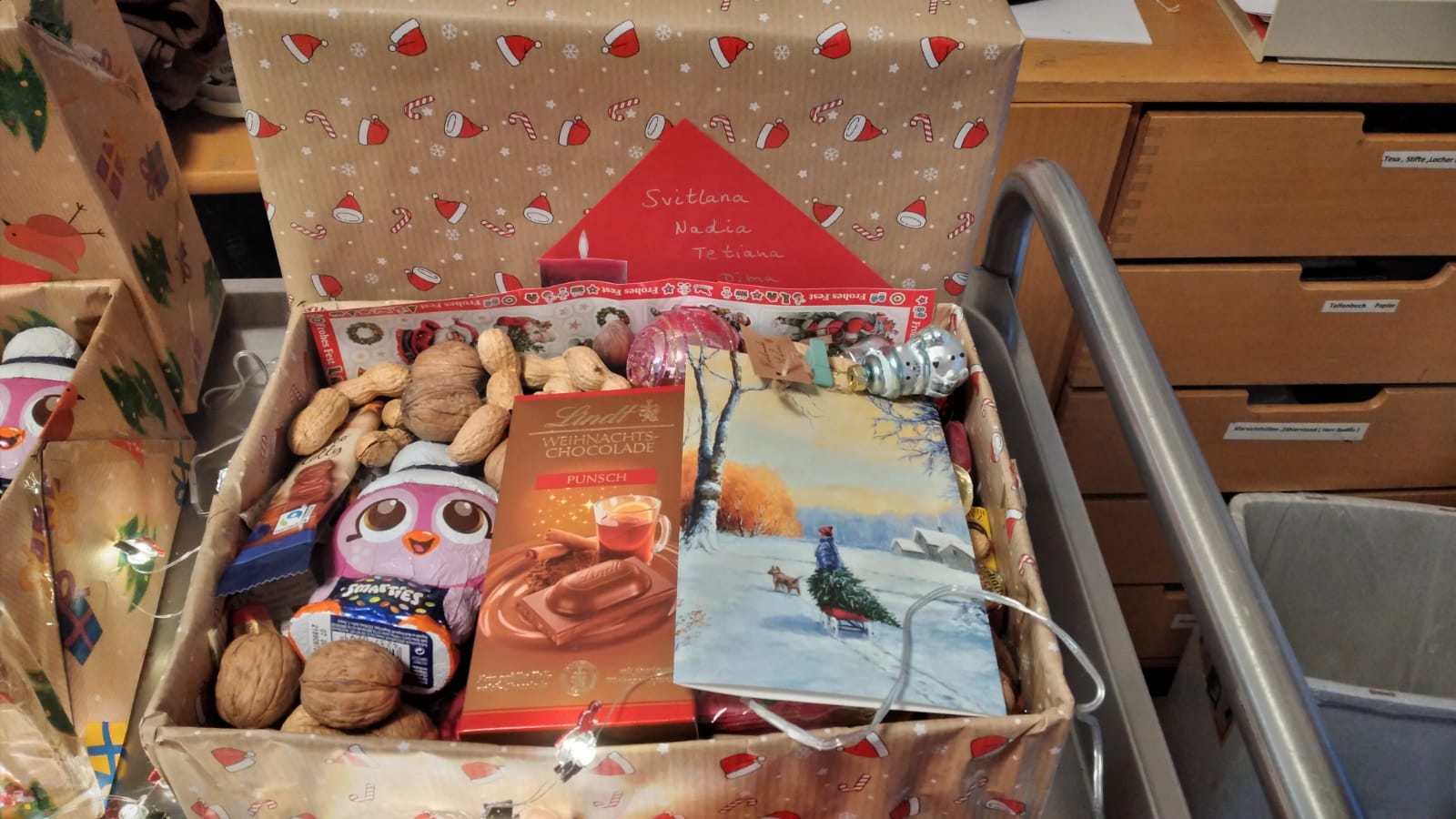 Zu Weihnachten gab es auch für die Ukrainer/-innen Geschenke und Süßigkeiten, die wir dank der Spenden aus der Gemeinde kaufen konnten. Auch die Weihnachtsmarkt-Aktionen sind davon bezahlt worden.