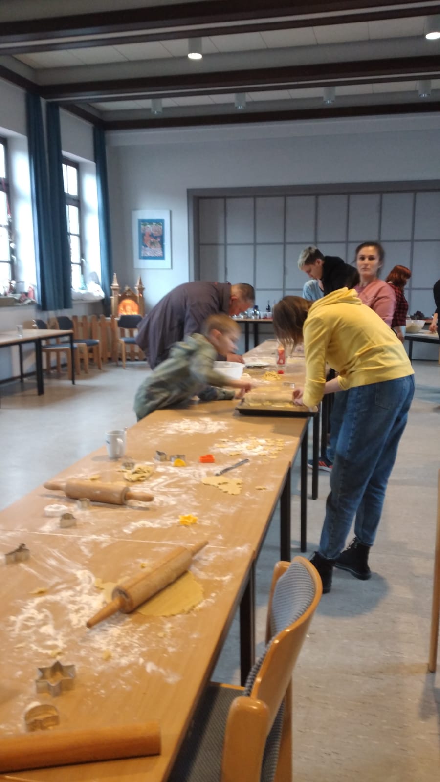 In der Adventszeit gab es eine große Backaktion im Gemeindesaal, an der alle viel Spaß hatten. Liebevoll dekorierte Kekse konnten alle in ihr neues Zuhause mitnehmen. Außerdem gab es dann auch noch für alle einen Adventskalender.